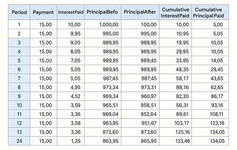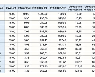 In this module, you provide bond informtion and the bond schedule of payment including the interest payment, principal payment, outstanding principal, cumulative interest and cumulative principal are calculated which you can download as an excel file.